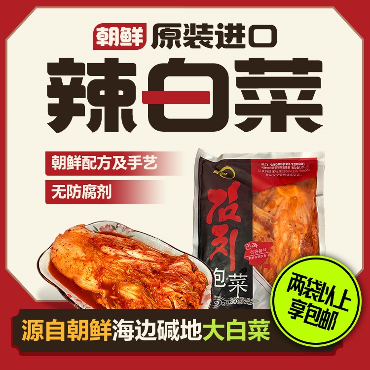 正宗朝鲜原装进口辣白菜(辣)/白泡菜(不辣)两种口味 纯手工制作,无防腐剂 口感鲜脆 酸甜适中 两件以上包邮
