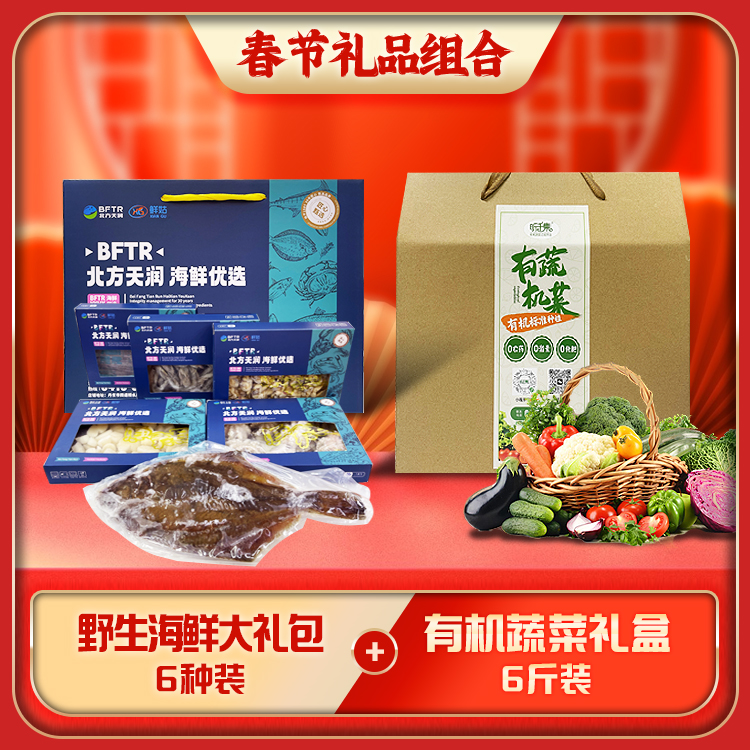 【2026春节年货礼品组合】6斤装有机蔬菜精品礼盒+野生海鲜礼盒(6种海鲜)